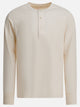 T-shirt serafino "Henley" Merz b. Schwanen con maniche lunghe e struttura a cuciture laterali. Realizzata in cotone biologico lavorato con metodi tradizionali, presenta taglio sagomato e bordi rifiniti. La filettatura del bordo del serafino è in tessuto di cotone intrecciato, i bottoni sono in vera madreperla. La silhouette segue una linea regolare e la vestibilità è classica. Polsini in maglia piatta e inserti triangolari sotto le braccia completano la costruzione.