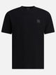 T-shirt girocollo in jersey di cotone Stone Island con silhouette aderente. Il modello presenta una struttura a manica corta e una costruzione in jersey di cotone crêpe a trama compatta. Il design è caratterizzato da una composizione uniforme, superficie liscia e finitura tinto in capo. Un'applicazione monocromatica del logo Compass è posizionata sul petto, integrata nella struttura frontale. Saldature e cuciture rimangono lineari e prive di elementi decorativi aggiuntivi.