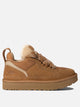 Sneaker "Lowmel" Ugg, realizzata con tomaia in pelle scamosciata e rete di tela intrecciata riciclata, presenta una struttura modellata su linee contemporanee. La mascherina in mesh e il cinturino posteriore in tessuto resistente sono completati da lacci spessi in poliestere riciclato, pensati per essere indossati sia sciolti sia allentati. Collarino e linguetta oversize sono imbottiti per una calzata stabile. Suola interna e fodera utilizzano UGGplush™ e mesh tecnico.