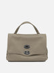 Borsa a mano "Postina" Zanellato in pelle martellata, costruita con lavorazione artigianale e struttura morbida. Il modello presenta una silhouette arrotondata e linee essenziali. Tracolla regolabile in pelle che consente il trasporto sia a mano sia a tracolla. Chiusura a doppia patta senza elementi ornamentali superflui. Interni rivestiti in tessuto, completati da una tasca applicata per oggetti di uso quotidiano.