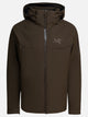 Arc'teryx Macai down jacket features a waterproof construction made from technical materials. The jacket offers a regular silhouette with padded construction and clean seams. The bottom hem is adjustable via drawstring. Double elastic closure protects from wind without buttoned vents. Two front zippered pockets, additional hidden pocket under the logo, zippered arm pocket, and underarm vents complete the functional construction.