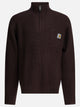 Carhartt WIP "Detroit" half-zip sweater made of natural and synthetic blend yarn. Stocking construction at the armholes for an even seam appearance. The construction features a half-zip front closure and a patch pocket on the chest complete with a zipper closure and square fabric label. The silhouette maintains straight lines and functional details.