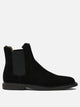 Common Projects suede chelsea ankle boots made of suede leather, featuring a slip-on construction with elastic side inserts. The upper features a linear silhouette with a clean profile and minimalist structure. The model features a rubber sole that defines the base and provides support while wearing. Elastic inserts promote ease of wear and stability on the ankle.