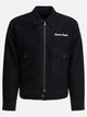 Human Made zippered overshirt jacket made of thick cotton with fine textured stripes. Short construction, full front zipper closure. Two flap patch pockets on front. Camouflage graphic with animal motif embroidered on the back with chain technique. Hem adjustment tab with heart button. Applied brand logo on left chest. Rigid structure, oversized silhouette and defined lines.