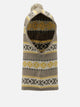 Kapital "Yellowknife" balaclava, made of knit with geometric jacquard pattern across the entire surface. The integral construction wraps around the head, neck and upper torso, leaving a wide frontal opening for the face. The bottom edge is finished with stretch ribbing to promote a snug fit, while the top is completed with an appliquéd pompom. The woven branding label is positioned on the side.