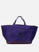 Needles "Tool Tote" travel bag, constructed of shiny nylon, features wide and soft structure, maintained by two reinforced handles and double top closure with adjustable straps. The silhouette generates volume and facilitates carrying, while the exterior layout includes two patch pockets, one of which is zippered. The surface is defined by the Needles logo printed on the front.