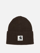 "Sacai x Carhartt WIP" Sacai cap features stretch shaved knit construction. The silhouette is defined by ribbed knitting that provides a structured fit. The turn-up hem is integrated to promote stability and coverage. The uniform texture reflects the use of compact yarns. There is an appliquéd patch on the front, highlighting the graphic identity of the pattern.