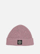 Stone Island mouliné wool cap, made with mouliné yarn at fineness 3. The structure features a fitted silhouette, with ribbed lapels positioned at the bottom. The workmanship highlights the irregular texture of the fabric, while the Compass logo patch applied on the front defines its identity. The pattern maintains a compact construction, promoting uniform fit and coverage.
