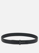 Tom Ford crocodile print leather belt features a rigid structure and linear silhouette. The metal buckle features the shape of the letter "T," a distinctive element of the collection. The surface of the belt is hand-finished with riveted edges and tonal stitching. The design features adjustable holes for fitting, and the closure is made with a concealed hook-and-loop fastener.