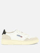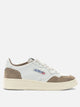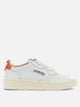 Autry "Medalist Low" sneaker constructed with natural leather upper and low structure. The compact silhouette recalls tennis models from the 1980s. The microperforated toe enhances the breathability of the shoe. The heel features a metallic leather insert. Padded collar, cotton flat lace-up and embroidered label stitched on tongue. Combined leather and cotton terry lining, rubber sole.