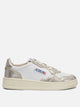 Autry "Medalist Low" sneaker with natural-looking leather upper, reinforced panel structure, micro-perforated toe detail to promote breathability. Design features low-cut lines and rounded silhouette, padded collar and tongue with stitched embroidered label. Flat cotton laces offer adjustable closure. Lining composed of leather and cotton terry, sole made of non-slip rubber.