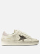 Golden Goose "Stardan" sneaker with a Nappa leather upper featuring differentiated percentages of sheepskin and cowhide. The design features a compound structure, with laminated leather side insert and suede back detail. The lining combines technical fabrics and natural fibers, while the flat sole features a molded rubber construction. Lacing includes main laces and an extra set provided.