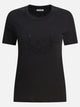 Cotton T-shirt with Moncler logo, made of pure cotton jersey with a compact structure. The design features a straight line, a crew-neck collar finished with internal beading and short applique sleeves. The Moncler logo is printed on the front and enriched with an embossed effect that defines the contours. Smooth surface, flat inner seams and minimal details characterize the essential silhouette.