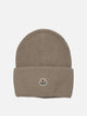 Moncler wool beanie, constructed from rib-knit carded wool knit. The silhouette follows a classic shape with medium weight, designed to provide warmth and comfort during daily wear. The 7-fine structure highlights the compactness of the weave and limits heat loss. The absence of superfluous details enhances the purity of the material and the essential functionality of the accessory.