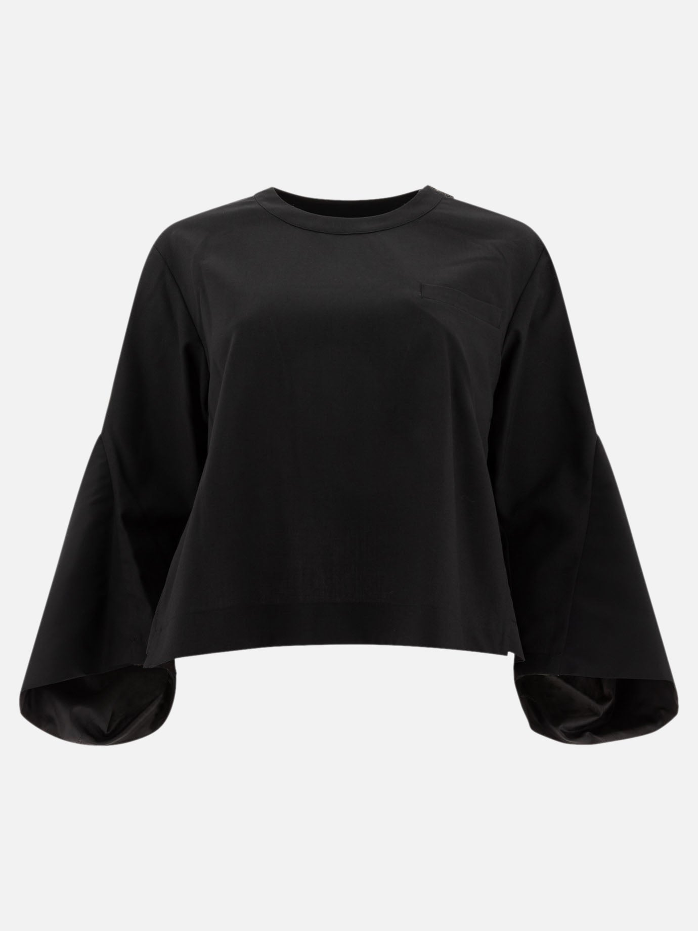 Sacai's "Suiting x Nylon Twill" sweater is a unique garment that combines elegance and practicality. Perfect for the modern woman, this sweater combines high-quality fabrics with cutting-edge design, offering a sophisticated yet comfortable look. Ideal for those seeking a distinctive style for every occasion.