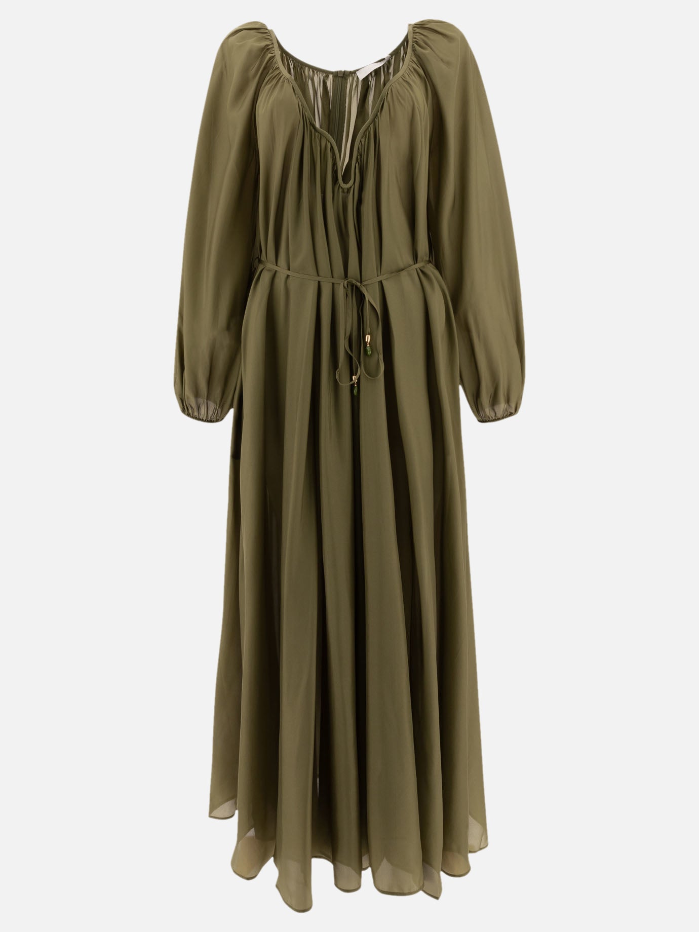 - A silk midi dress with long sleeves